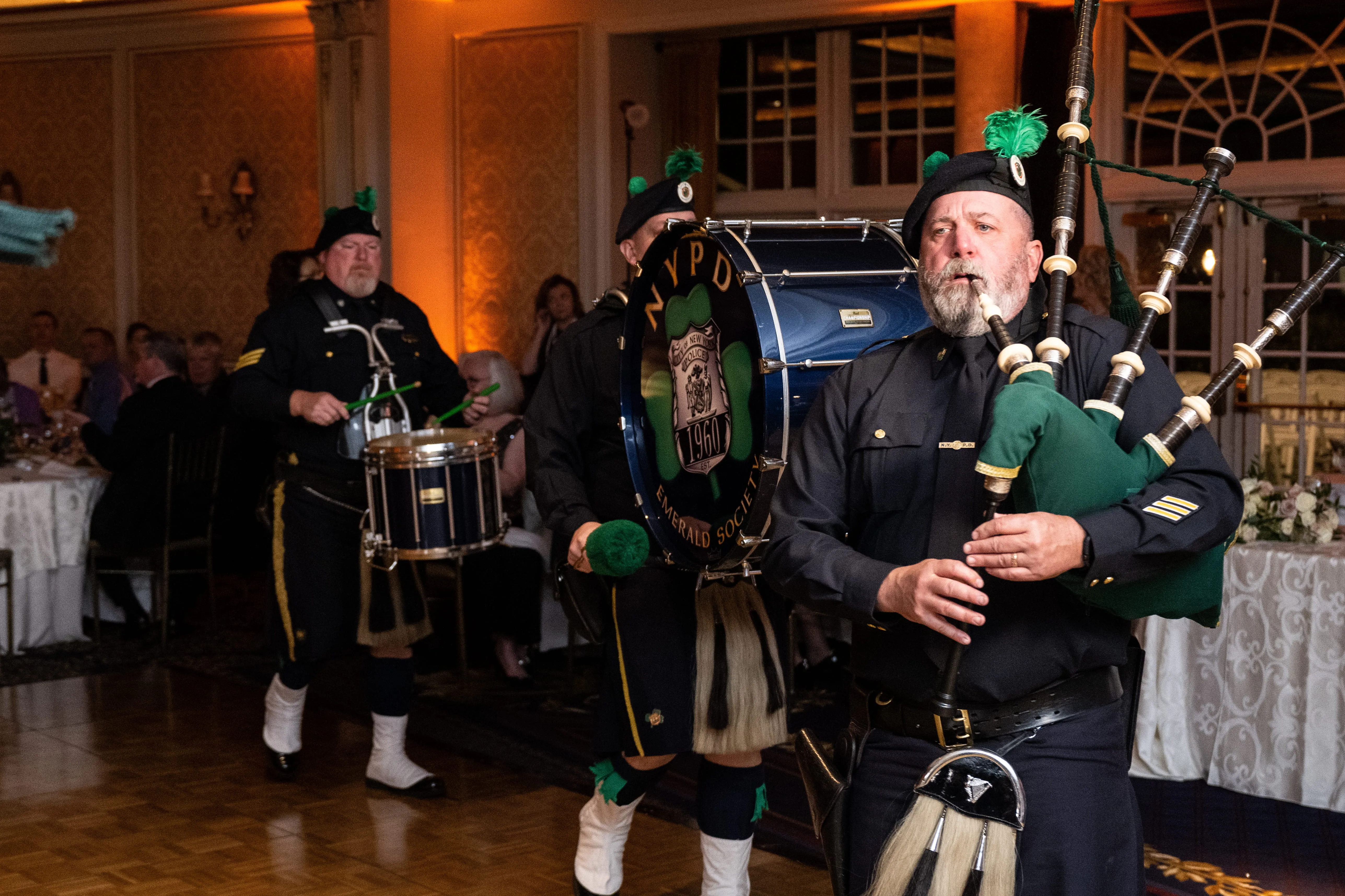 The integration of bagpipes, a nod to the couple's heritage, was timed impeccably, filling the air with Celtic melodies towards the dinner's conclusion and naturally transitioning guests to the dance floor. The energy was palpable as the floor thrummed with activity, a testament to the vibrant atmosphere curated by Rob Hines Entertainment.