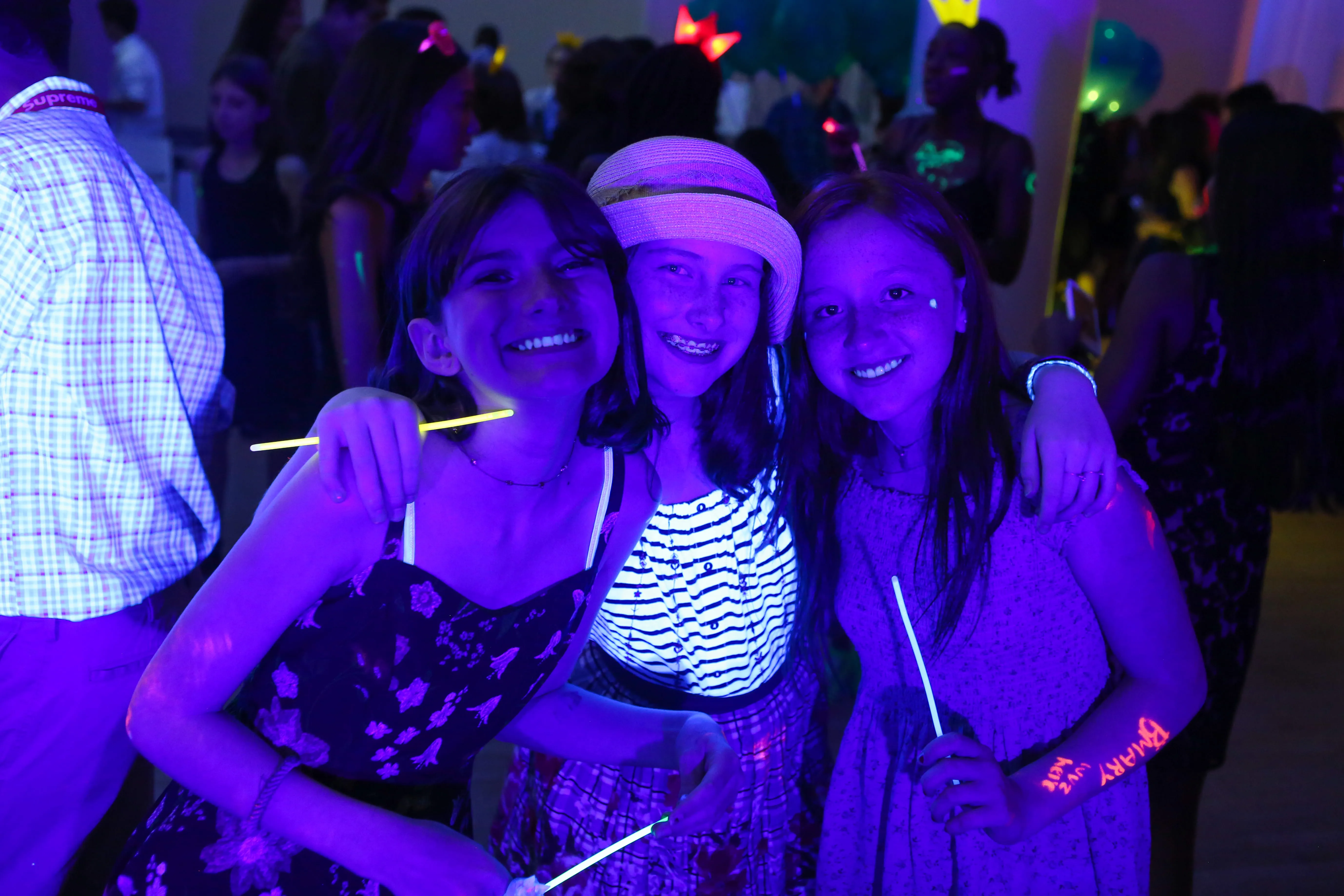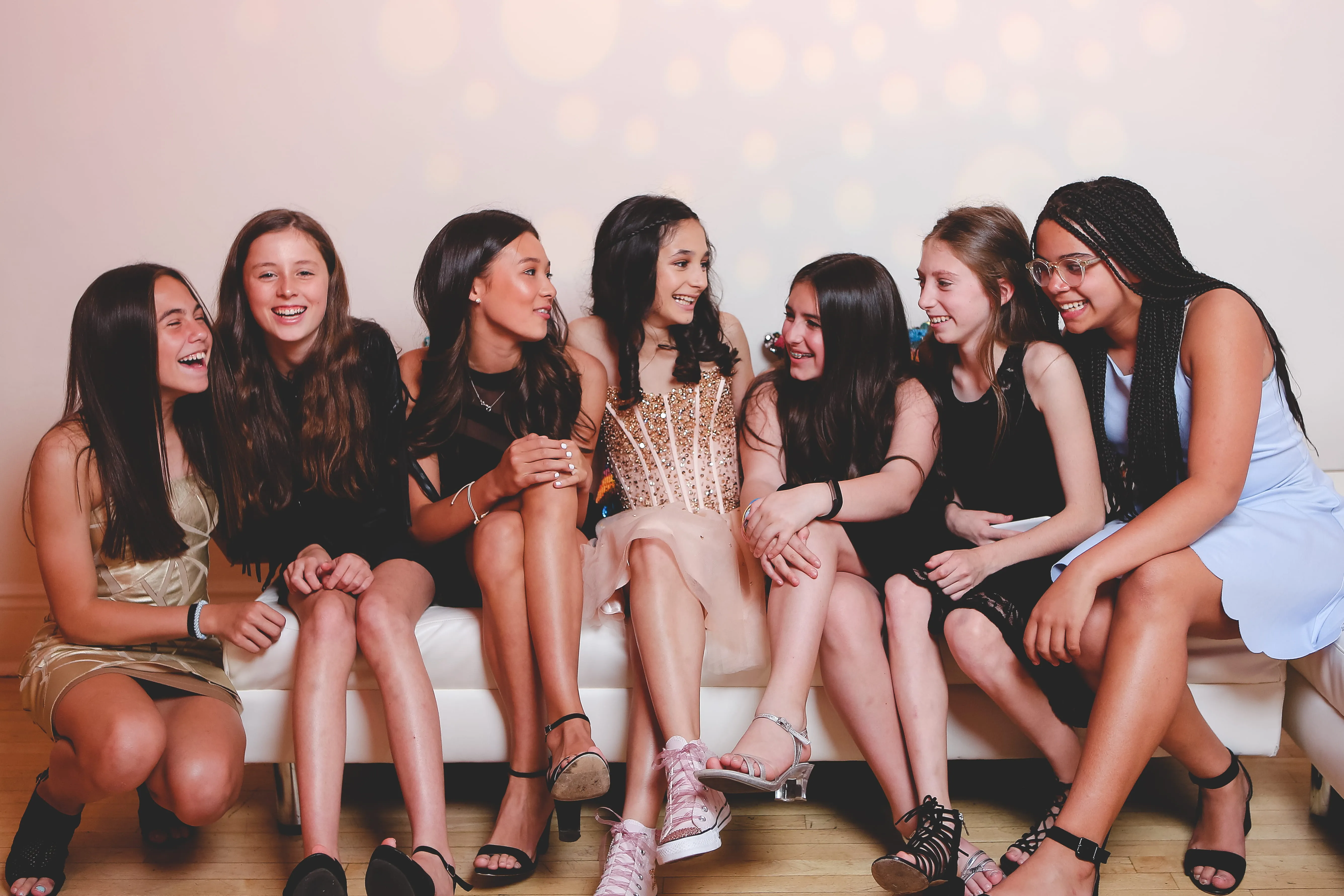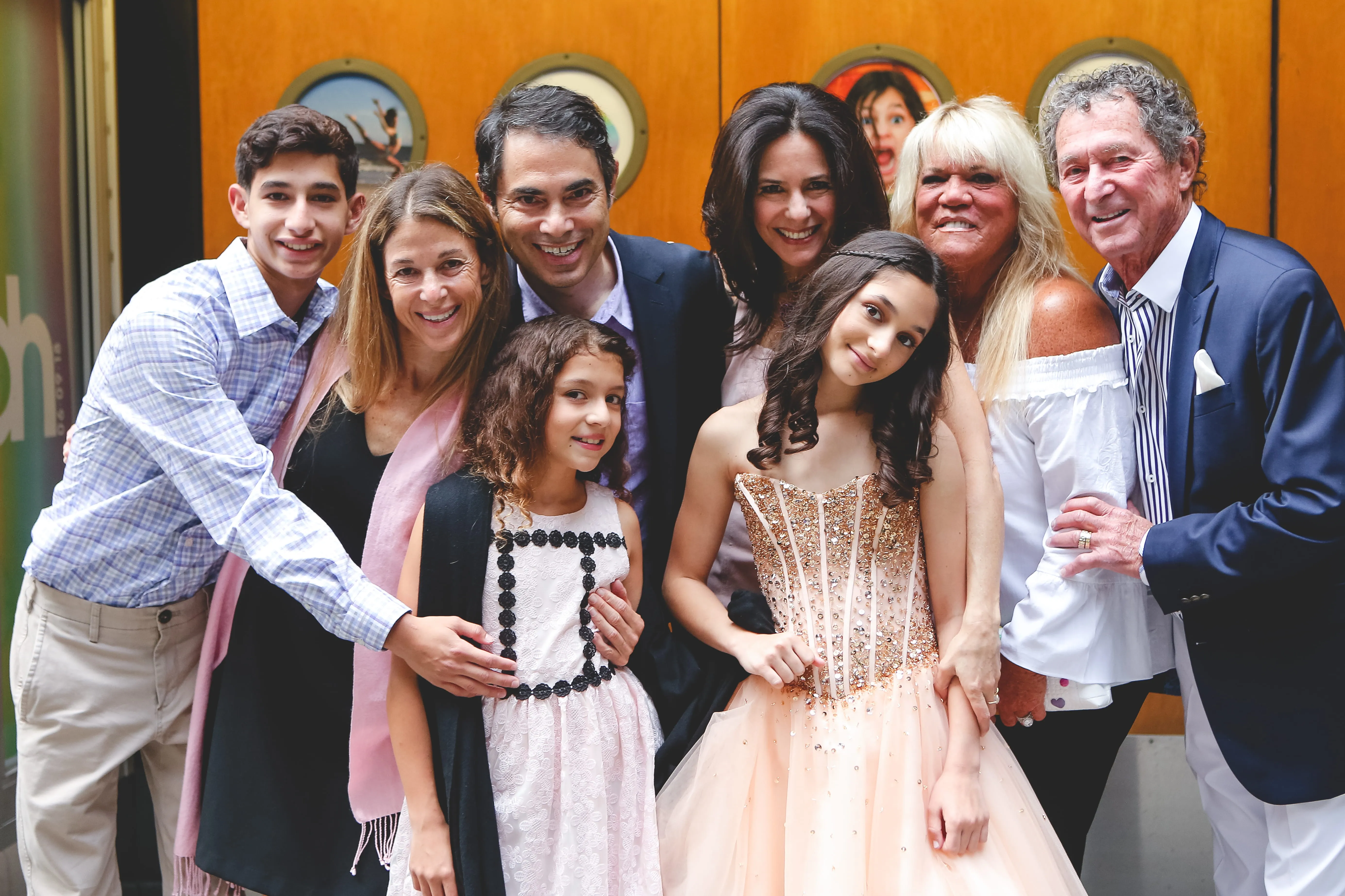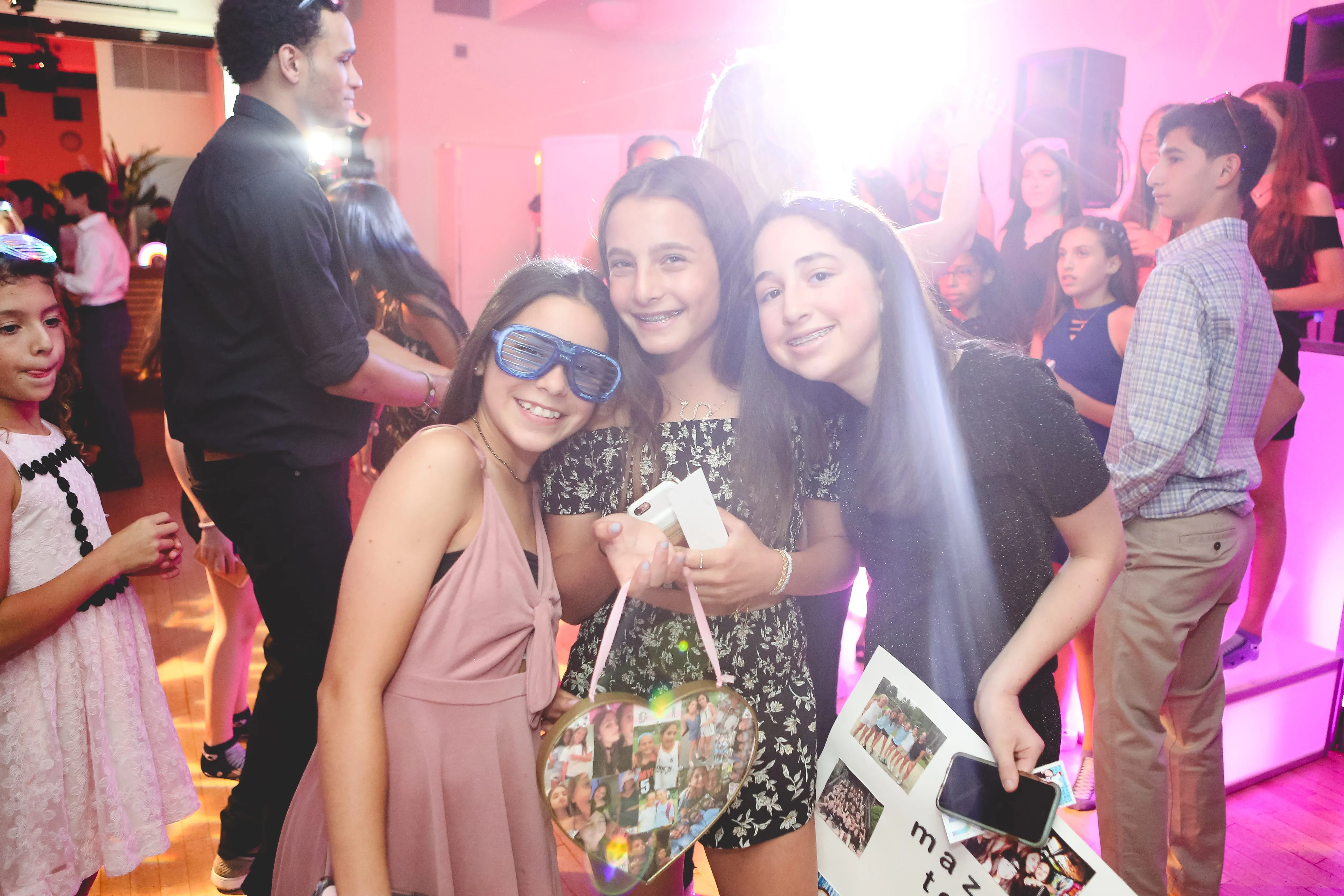 The photo booth was, as expected, a huge hit, and Dylan made a grand entrance, being carried into the room by the party motivators, ensuring everyone knew she was the star of the evening. The photographer worked tirelessly, capturing candid moments throughout the night with ninja-like stealth, and even took the time to snap some adorable photos of the bat mitzvah girl outside, with the NYC skyline serving as a stunning backdrop.