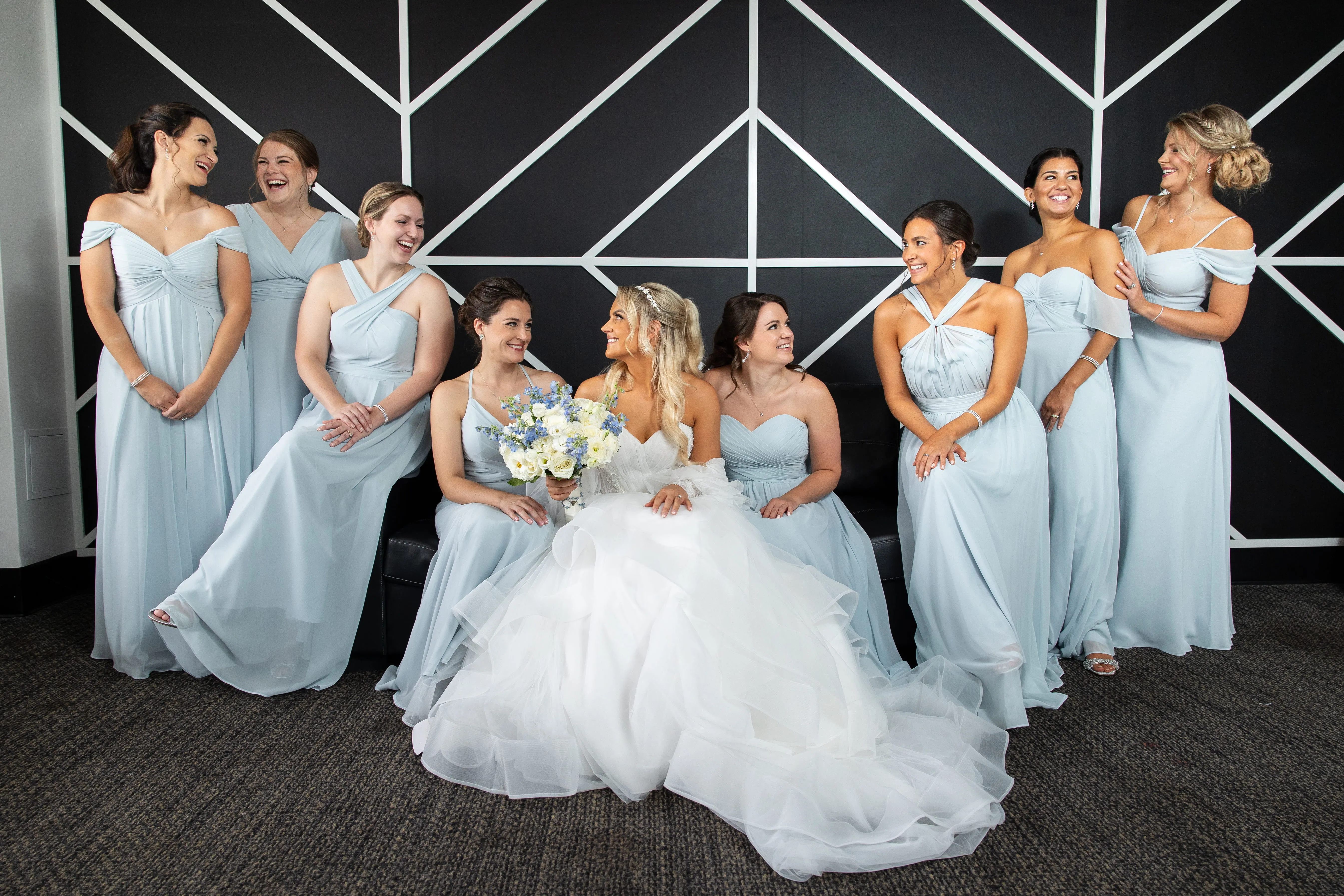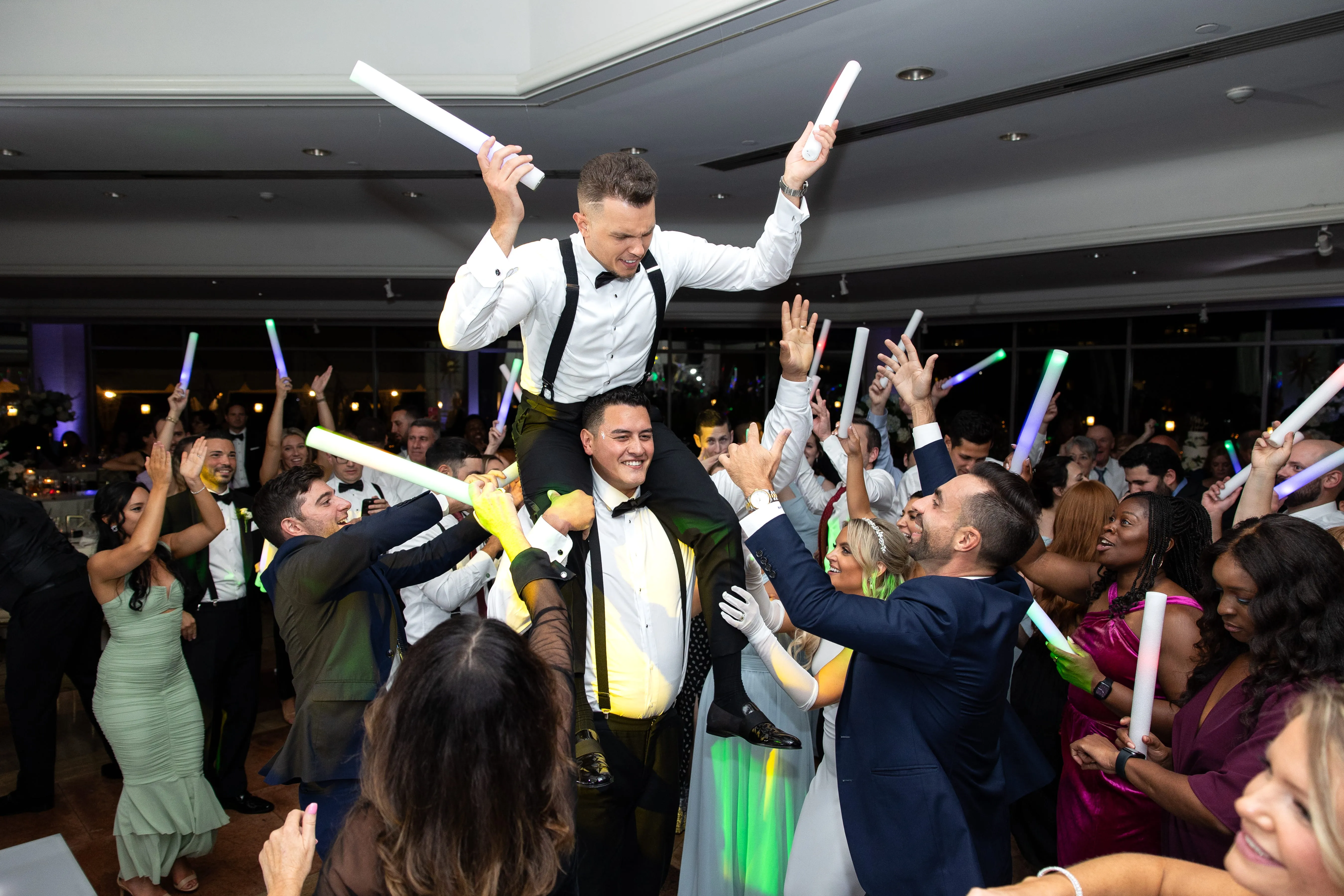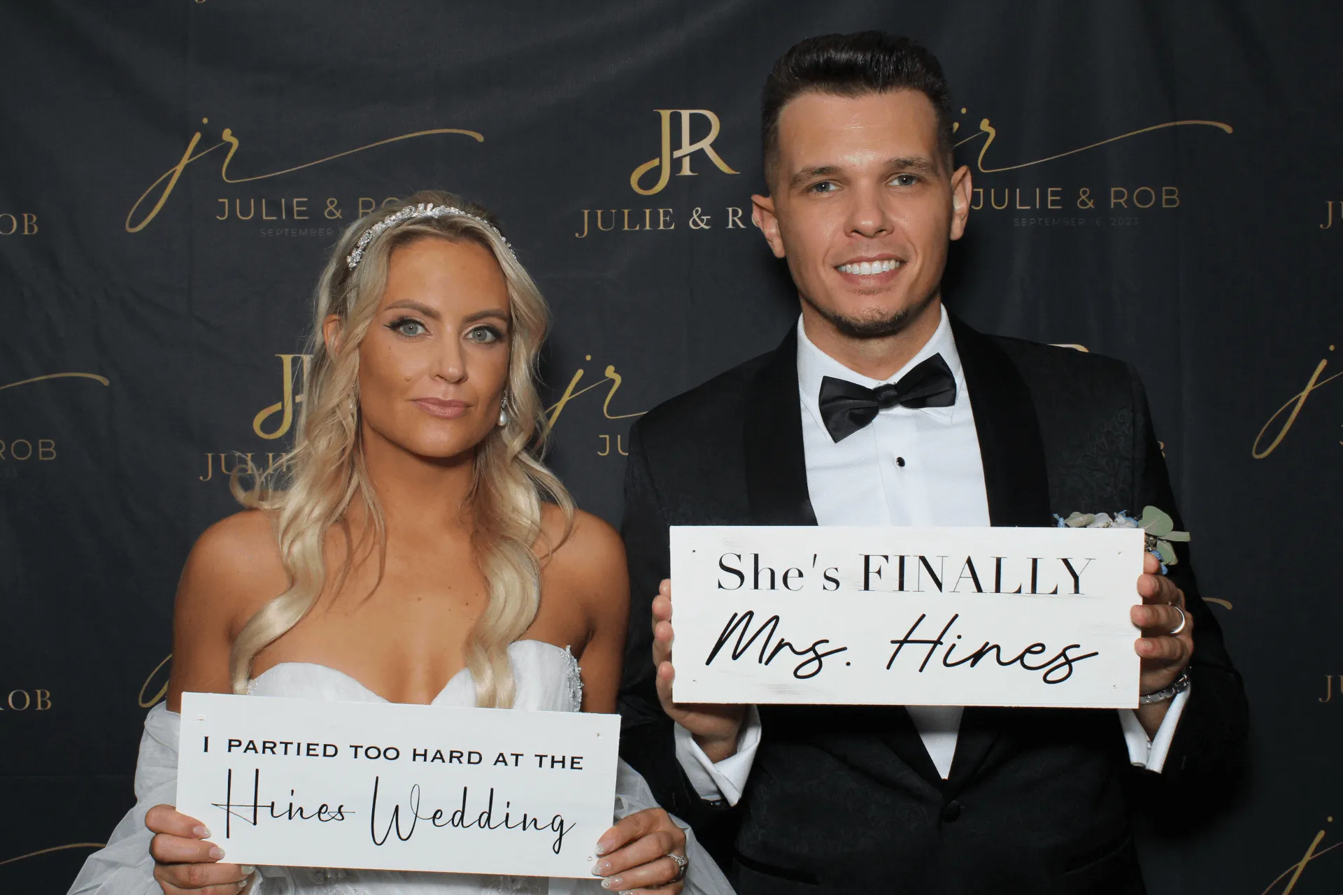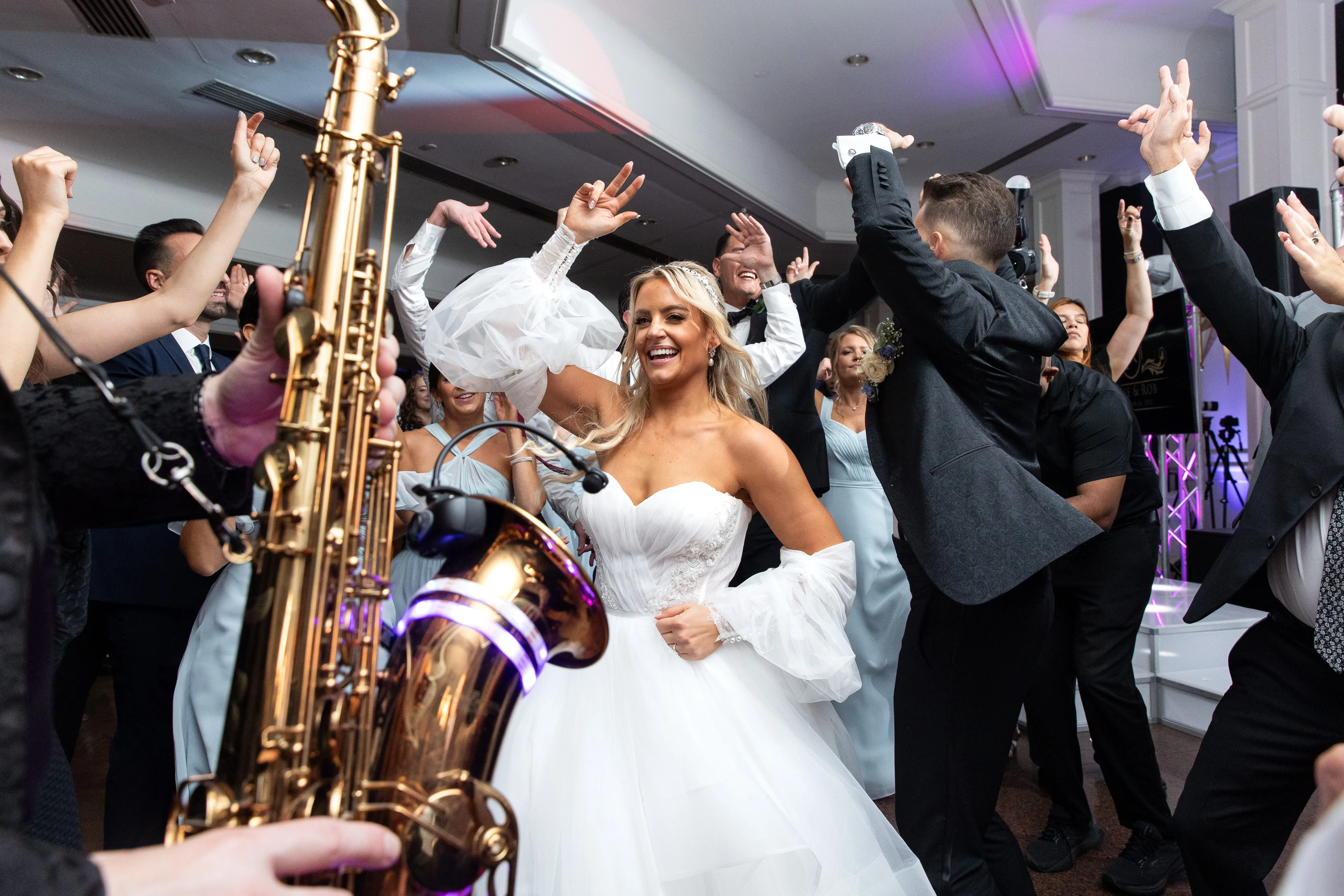 As the evening unfolded, the lighting took center stage, with a custom monogram illuminating a massive wall behind the DJ booth and white uplighting that perfectly complemented the event's theme. These meticulously planned and executed details underscored Rob Hines Entertainment's commitment to excellence, proving their ability to transform a couple's vision into a meticulously crafted, unforgettable celebration.