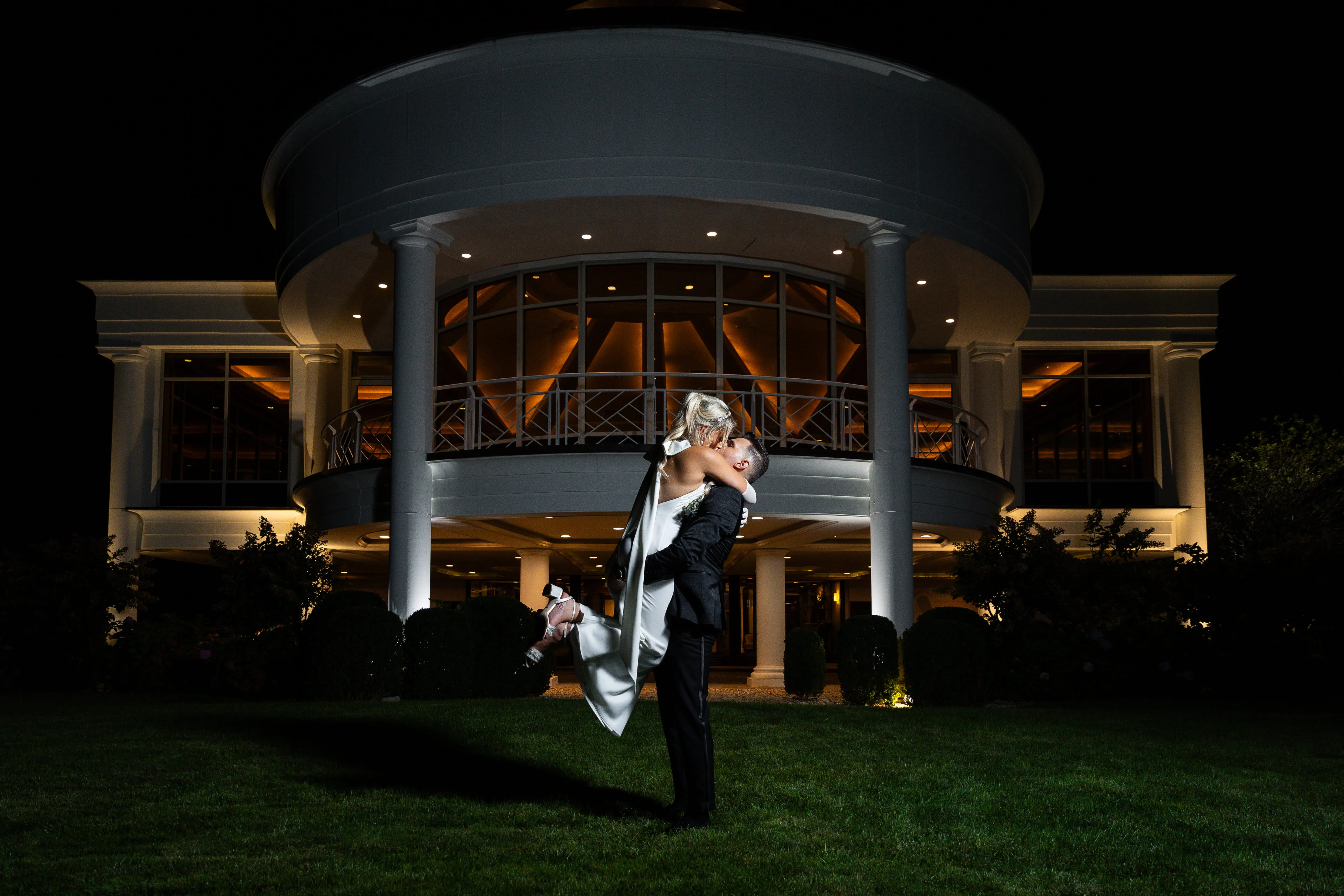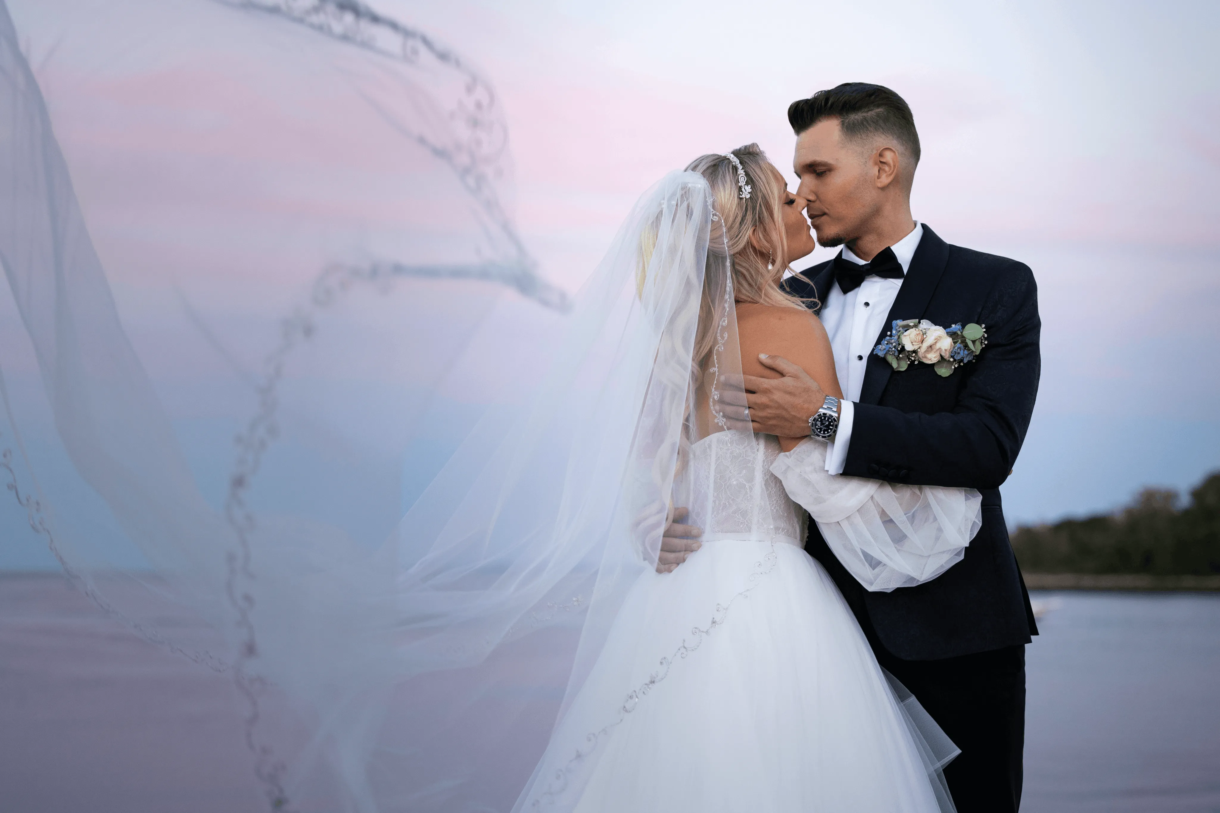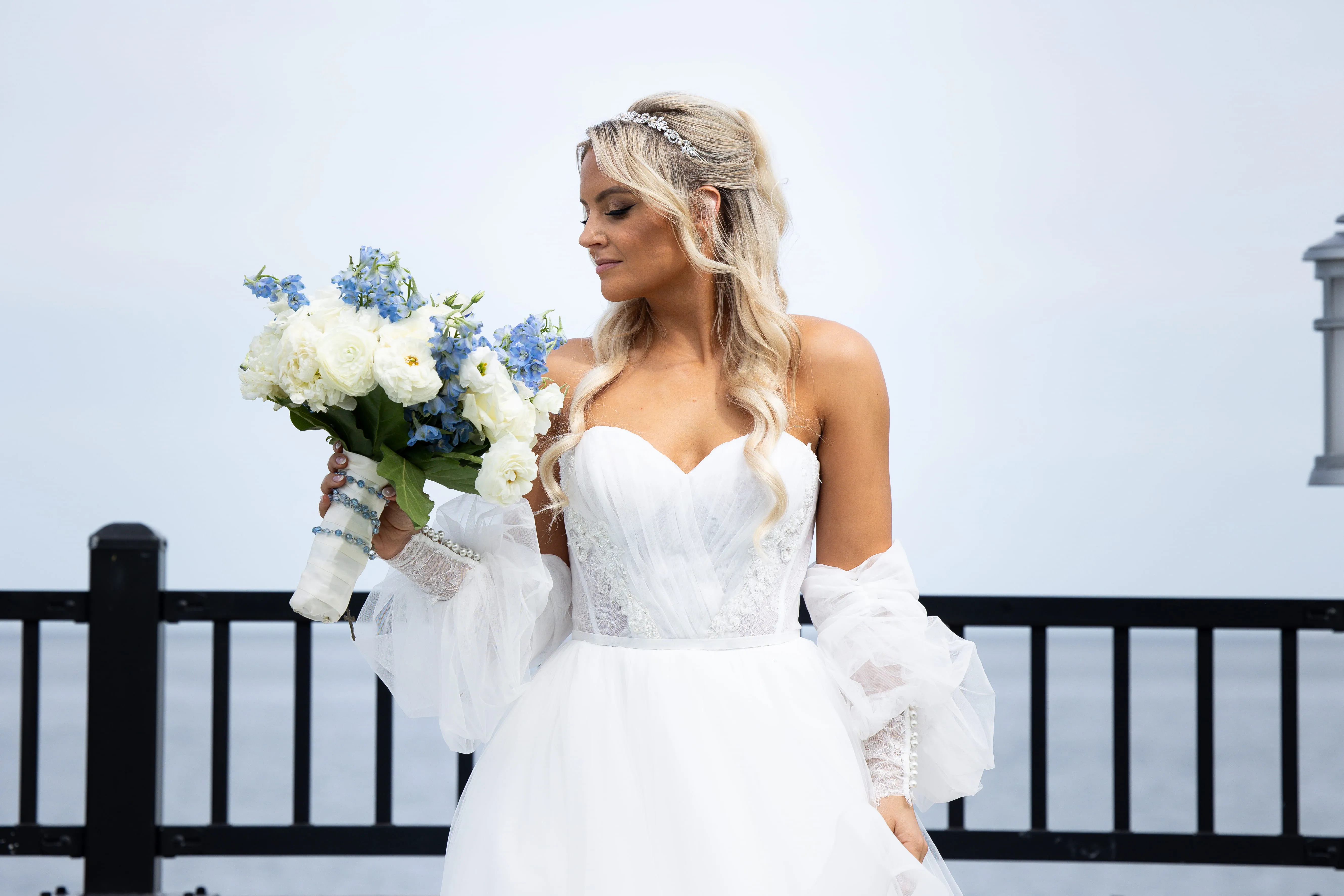 Rob Hines Entertainment collaborated closely with Rob and Julie, integrating a suite of services to seamlessly bring their wedding day vision to life, from the color palette to the theme. A unique all-white flower wall doubled as the DJ booth, harmonizing with the centerpieces to create an elegant atmosphere. Throughout the day, a comprehensive photo and video team, including an aerial drone, captured every moment from multiple angles, showcasing stunning views of the Long Island Sound at sunset. The photo booth further personalized the experience with custom strips and a unique backdrop, ensuring memorable keepsakes for guests.